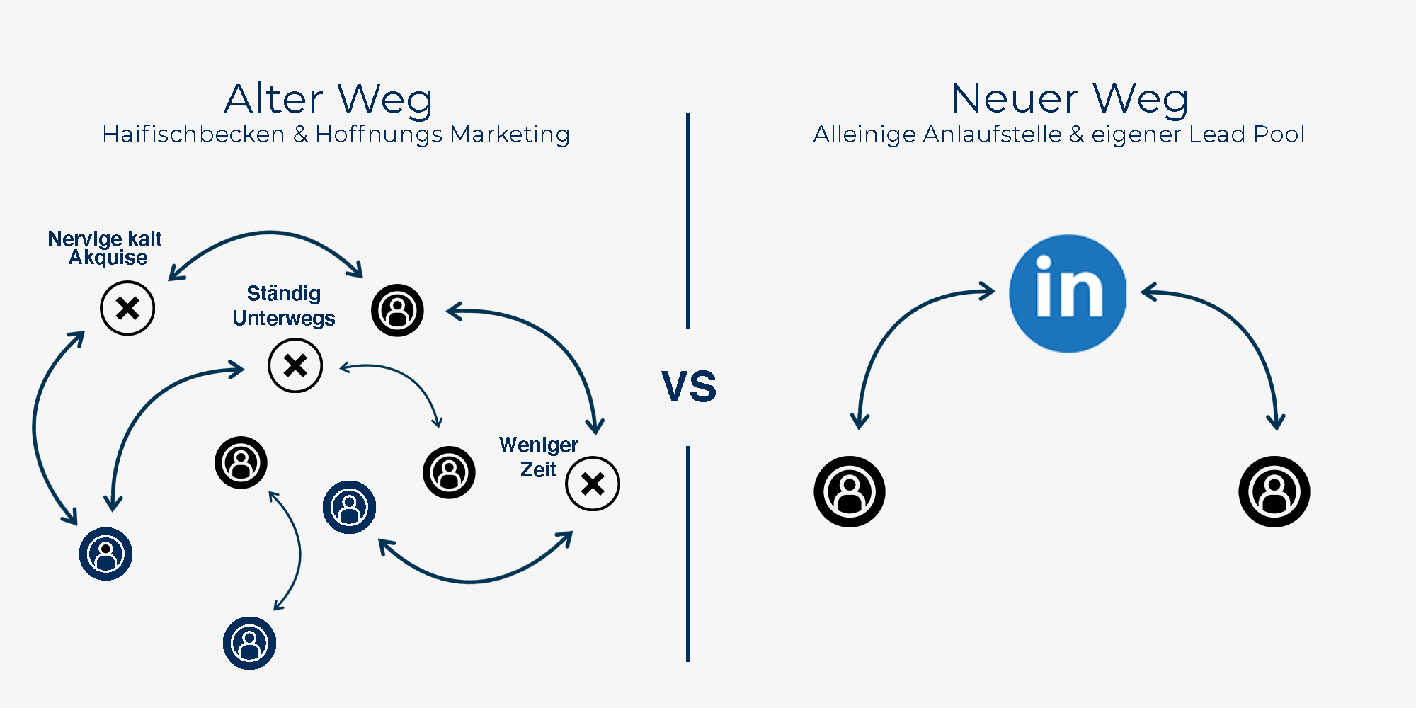 Die perfekte Quelle, um deinen eigenen Pool an brandheißen Leads aufzubauen. Bedeutet: Mit einem klaren System wechselst du vom “Haifischbecken” in den “blauen Ozean”. Und wirst mit der Umsetzung des Systems zur alleinigen Anlaufstelle in deinem Markt.